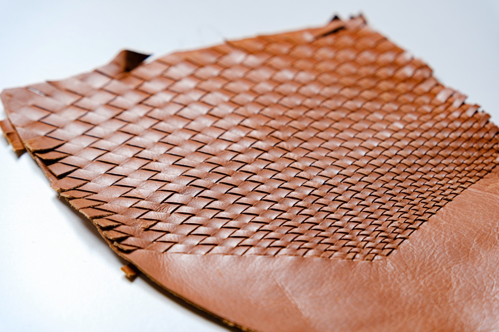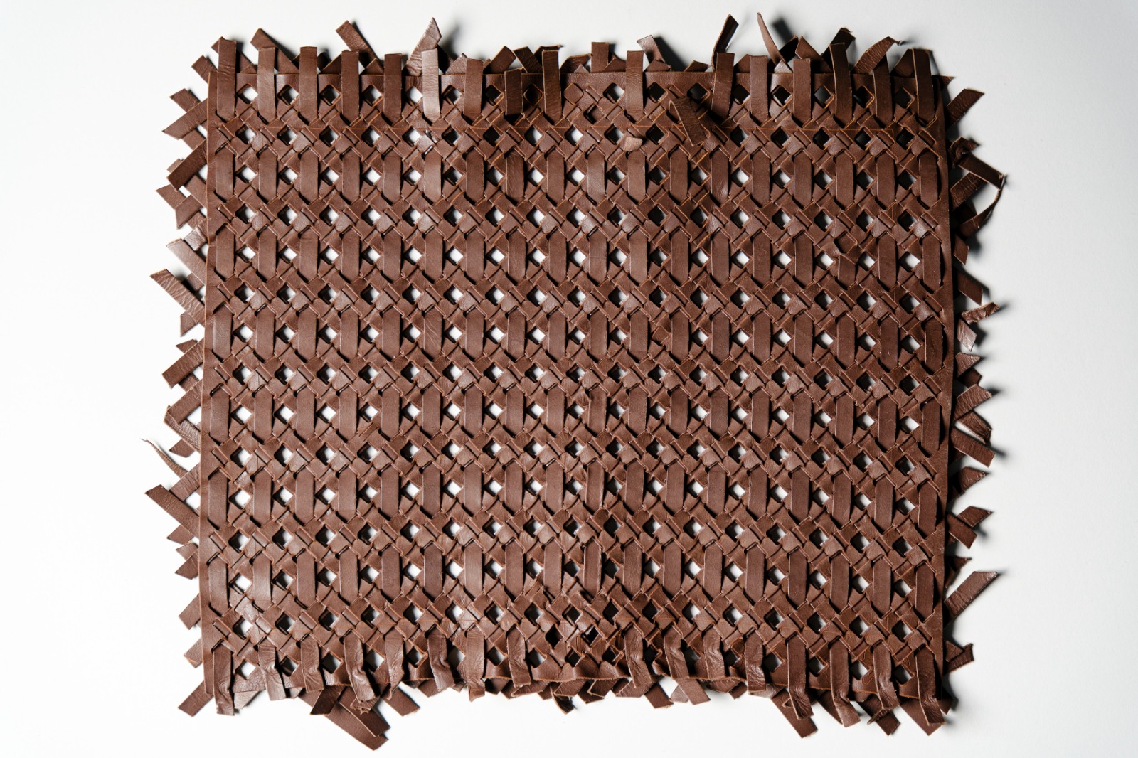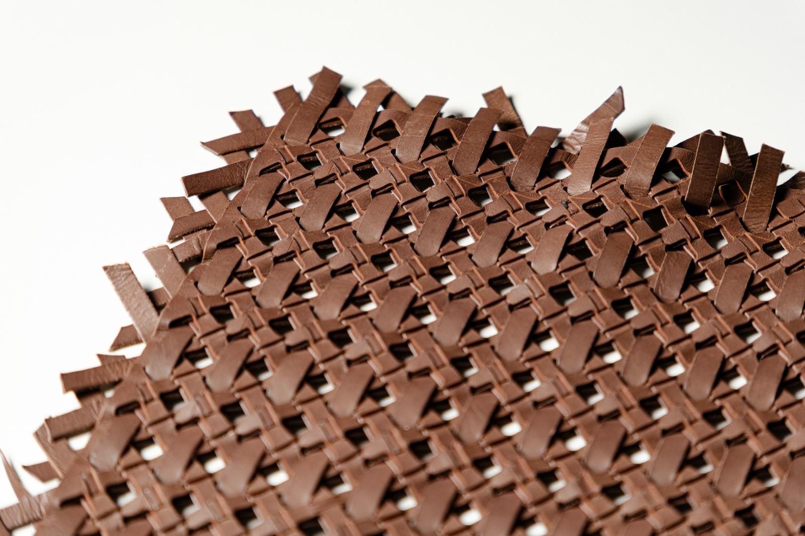 varie tipologie di intrecci a passo variabile con pelle tagliata a macchina con lavorazione manuale. Possibile trattamento ignifugo.