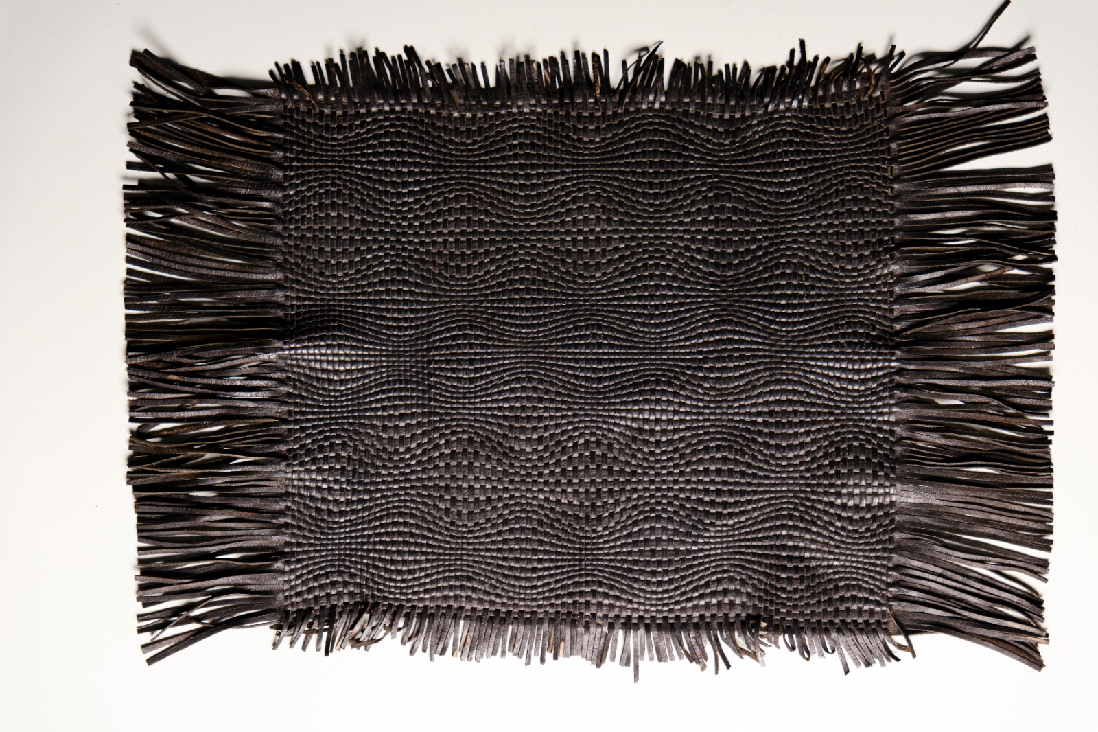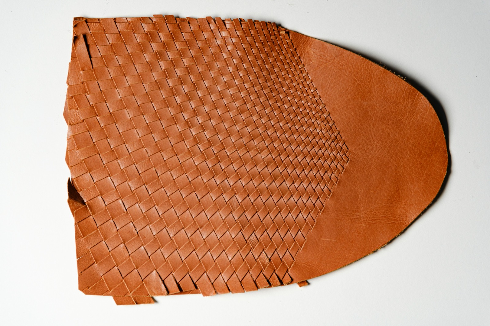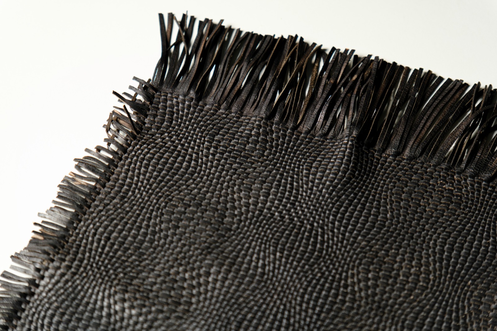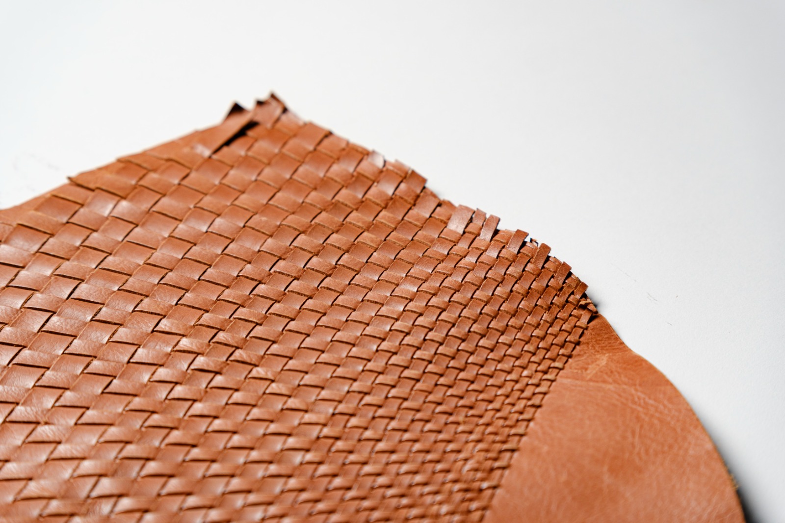 varie tipologie di intrecci a passo variabile con pelle tagliata a macchina con lavorazione manuale. Possibile trattamento ignifugo.