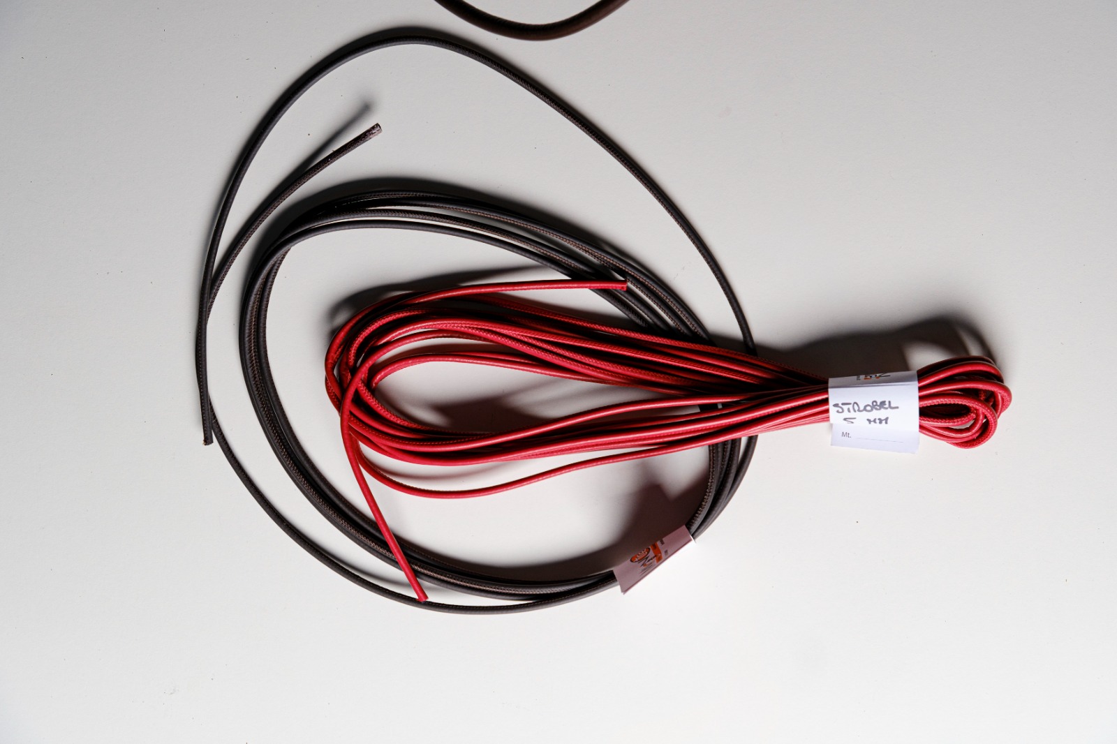 cordino diametro 0,5 0,8 e 1 cm rivestiti da guaina in pelle da 3 decimi con anima in ovatta di poliestere o cotone a scelta. Possibile trattamento ignifugo.